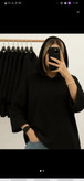 هودی آستین سه ربع کلاهدار مناسب فصل پاییز و زمستان فقط رنگ مشکی موجوده